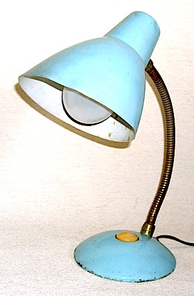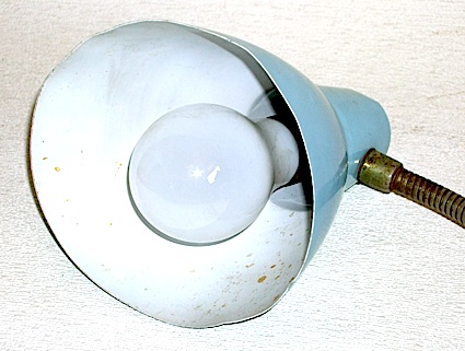 飾り気の無い金属製のシェードの凹みや首の蛇腹部分に浮いた錆等、シャビーでとても良い雰囲気を持っています。