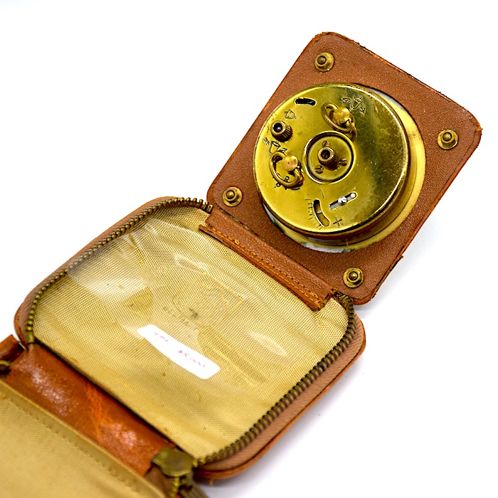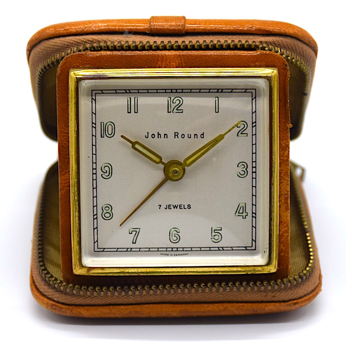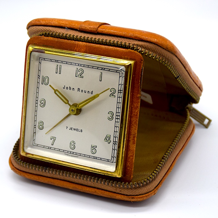 こちらの時計は本体を畳んだ状態にすると小さなトランクのように見えるという、非常に珍しいデザインのトラベルクロックです。