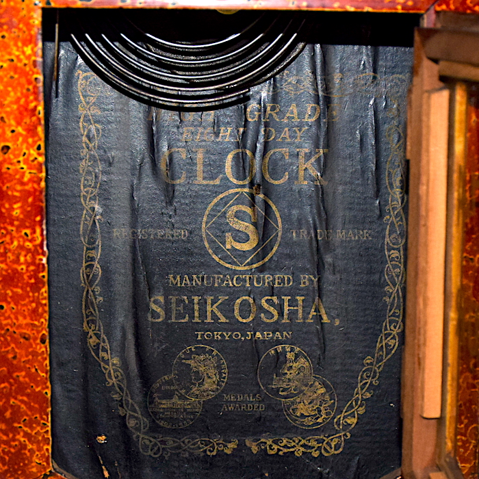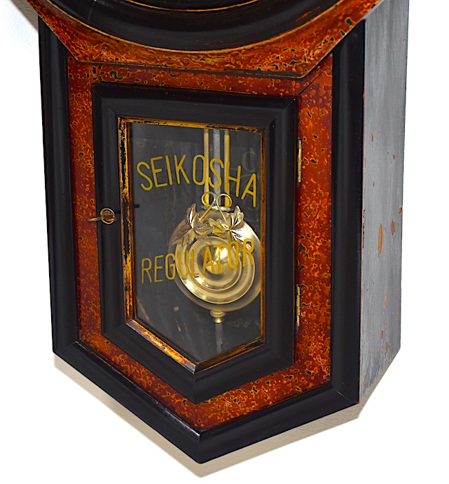 精工舎の柱時計「中兵庫尾長」、柳島工場時代の明治40年代頃に製造された物です。