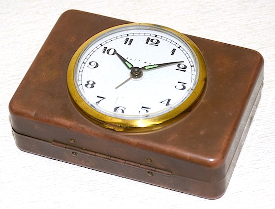 ムーブメントは一般的に「トラベルクロック」と呼ばれる小型の折り畳み式の置時計と同じような物が使われています。